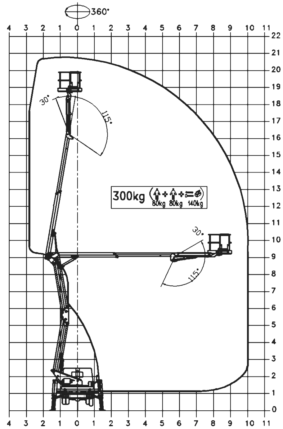 Arbeitshöhe 20.70 Plattformhöhe 18.70 Plattformgröße 1,4 x 0,7 x 1,1 m Bühnentragkraft 250 kg Drehbereich 360° Seitliche Reichweite 10,00 m Abstützbreite 3,70 m Durchfahrthöhe 2,80 m Fahrzeugbreite 2,10 m Fahrzeuglänge 6,80 m Eigengewicht 3500 kg Antrieb LKW-Motor Sonstiges Korbarm, 1-seitige oder bündige Abstützung möglich Führerscheinklasse Klasse B -