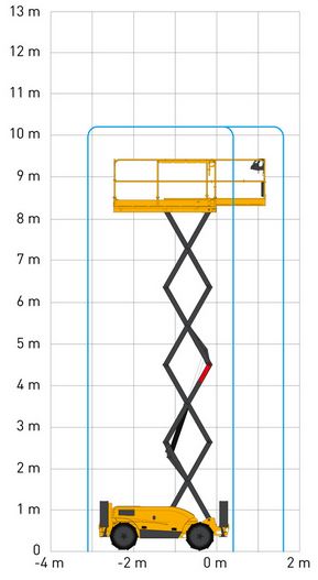 Arbeitshöhe 10.28 m Plattformhöhe 8.28 m Plattformgröße 1,45 x 2,50 m ( 3,70 inkl. Ausschub) Bühnentragkraft 565 kg Seitliche Reichweite 1,20 m (Ausschub) Durchfahrthöhe 2,37 m Fahrzeugbreite 1.80 m Fahrzeuglänge 3.18 m Eigengewicht 3530 kg Antrieb Diesel Sonstiges äußerer Wenderadius 4.63 m, Bodenfreiheit 28 cm, Steigfähigkeit 40%, Stützen Führerscheinklasse kein Führerschein erforderlich -