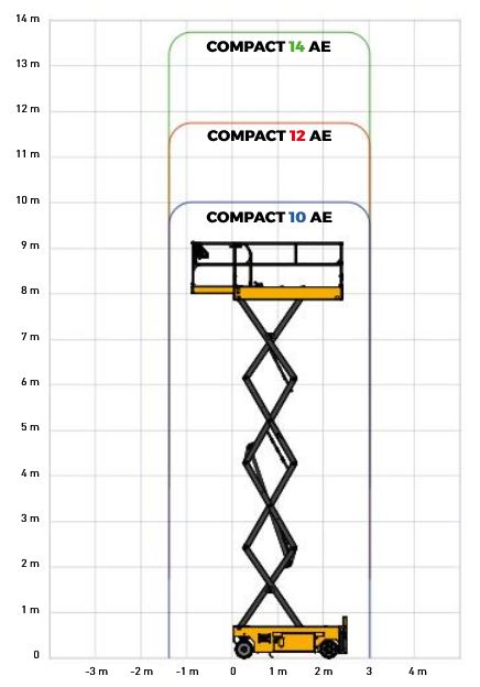 Arbeitshöhe 13.80 m Plattformhöhe 11.80 m Plattformgröße 1,17 x 2,40 m ( 3,30 m inkl. Ausschub) Bühnentragkraft 350 kg / 320 kg Seitliche Reichweite 0,92 m (Ausschub) Durchfahrthöhe 2,72 m / Geländer geklappt ( 2,02 / 2,08 m) Fahrzeugbreite 1.20 m Fahrzeuglänge 2.5 m Eigengewicht 3175 kg / 3070 kg Antrieb elektrisch / Batterie Sonstiges Bodenfreiheit 12,5 cm, Steigfähigkeit 25% Führerscheinklasse kein Führerschein erforderlich -