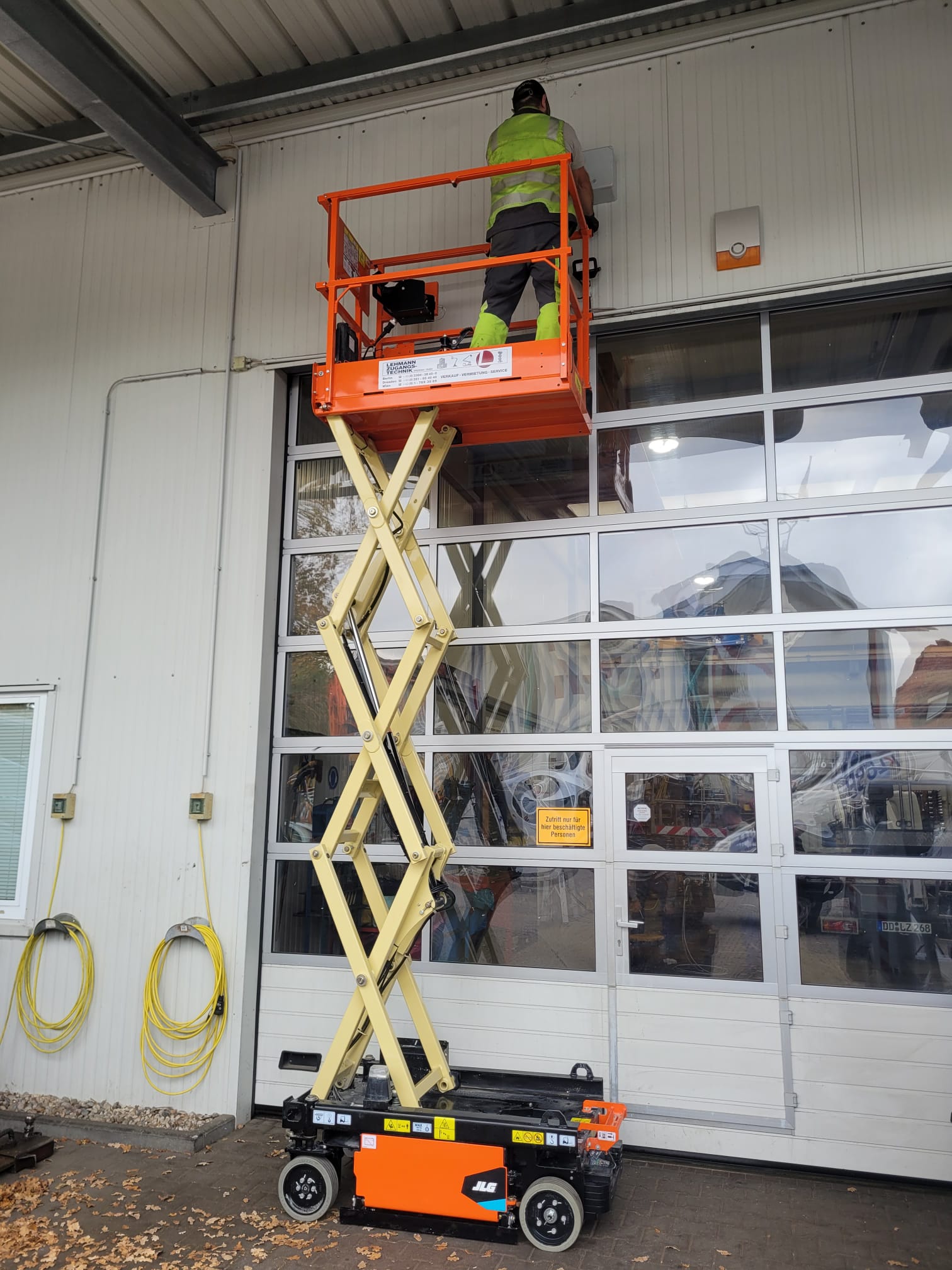 Arbeitshöhe 5.80 m Plattformhöhe 3.80 m Plattformgröße 0,75 x 1,30 m ( 1,85 inkl. Ausschub) Bühnentragkraft 227 kg Seitliche Reichweite 0,55 m ( Ausschub) Durchfahrthöhe 1,80 m Fahrzeugbreite 0,76 m Fahrzeuglänge 1.40 m Eigengewicht ca. 950 kg Antrieb elektrisch / Batterie Sonstiges äußerer Wenderadius 1.5 m, Bodenfreiheit 6 cm, Steigfähigkeit 25% Führerscheinklasse kein Führerschein erforderlich -
